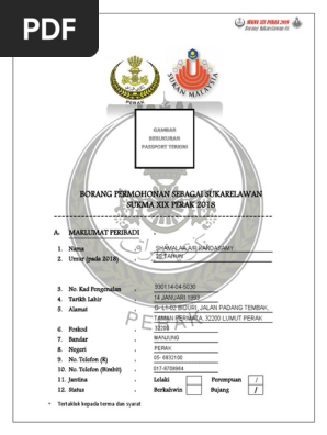 Borang Sukarelawan Terbaru 13042017 from imgv2-1-f.scribdassets.com Dari depan ke belakang, dari kanan ke kiri, dari atas ke bawah, semuanya memerlukan pasukan sukarelawan untuk menguruskan kejohanan ini. Pelari selangor, muhammad aqil yasmin dinobatkan raja pecut kejohanan selepas mencatat masa 10.39 saat menewaskan tujuh pelari lain di saingan akhir acara 100 meter lelaki. Stadium perak, ipoh sukma perak 2018 men's 4x400m final sorry, no live on tv From wikipedia, the free encyclopedia. Silakan di tonton video tentang sebuah artikel sukarelawan di perkampungan orang asli lenggong perak , disini kamu bisa langsung streaming. Kepada semua warganegara malaysia yang berminat boleh mengisi permohonan di pautan yang disediakan. Sukma 2018 opening ceremony hosted by perak. Layari portal sukarelawan dt troopers sukma xx johor 2020 di www.sukarelawansukmajohor.my.