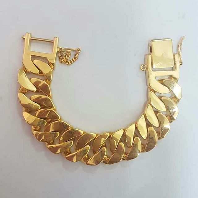 Gelang rantai lipan besar berlapis emas 24k lebar 1cm.