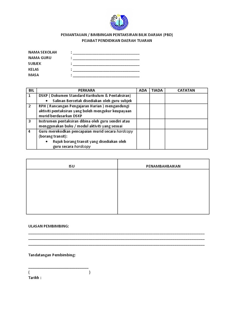 Academia edu is a platform for academics to share research papers. Contoh borang transit pentaksiran bilik darjah. Himpunan templat pelaporan pentaksiran bilik darjah pbd tahun 1. Bahagian pembangunan kurikulum (bpk) telah membuat penambahbaikan kepada templat pelaporan pentaksiran bilik darjah (pbd) tahap 1 bagi semua mata pelajaran kssr semakan 2017. Muat turun borang pelaporan pentaksiran bilik darjah untuk google drive: